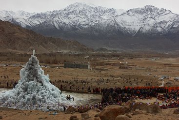 The natural glaciers have shrunk in recent decades in the himalayas. This leads to a lack of water in the early spring for agricultural activities in many villages. The Ice Stupa project aims to solve the water problem in Ladakh, this is done by freezing water in huge structures that in the spring, when they melt, will provide water for agriculture and vegetation. There have been 6 Ice Stupas constructed all around Ladakh.